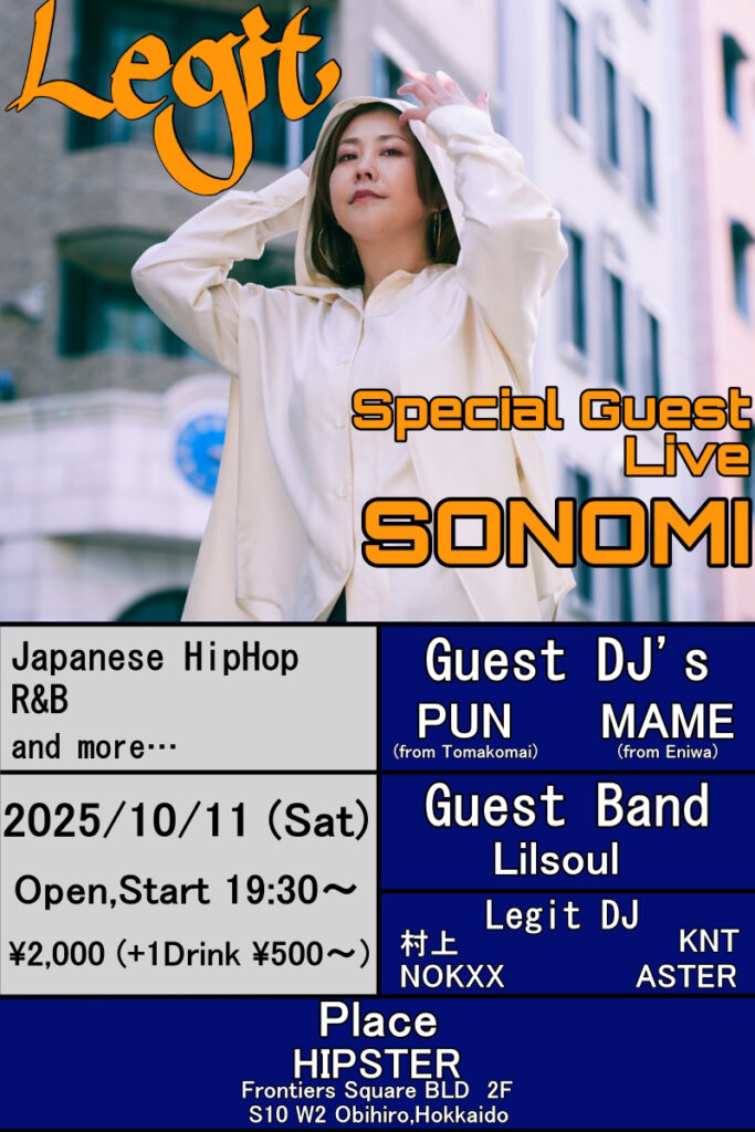 ◎2025.10.11(土)北海道帯広市にて開催の『Legit』に出演!