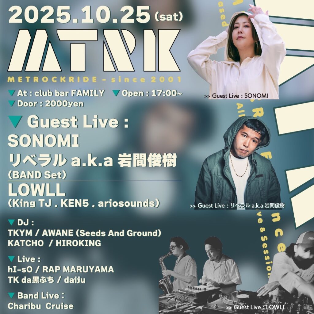 ◎2025.10.25(土)渋谷Club bar familyで開催の『Metrockride』に出演! 2025年10月24日 最終更新日時 : 2025年10月27日 kobayashi 同郷であるhI-sOのレギュラーイベントで、これまた同郷のリベラルもGuest出演。 裏テーマは「青森会」!!